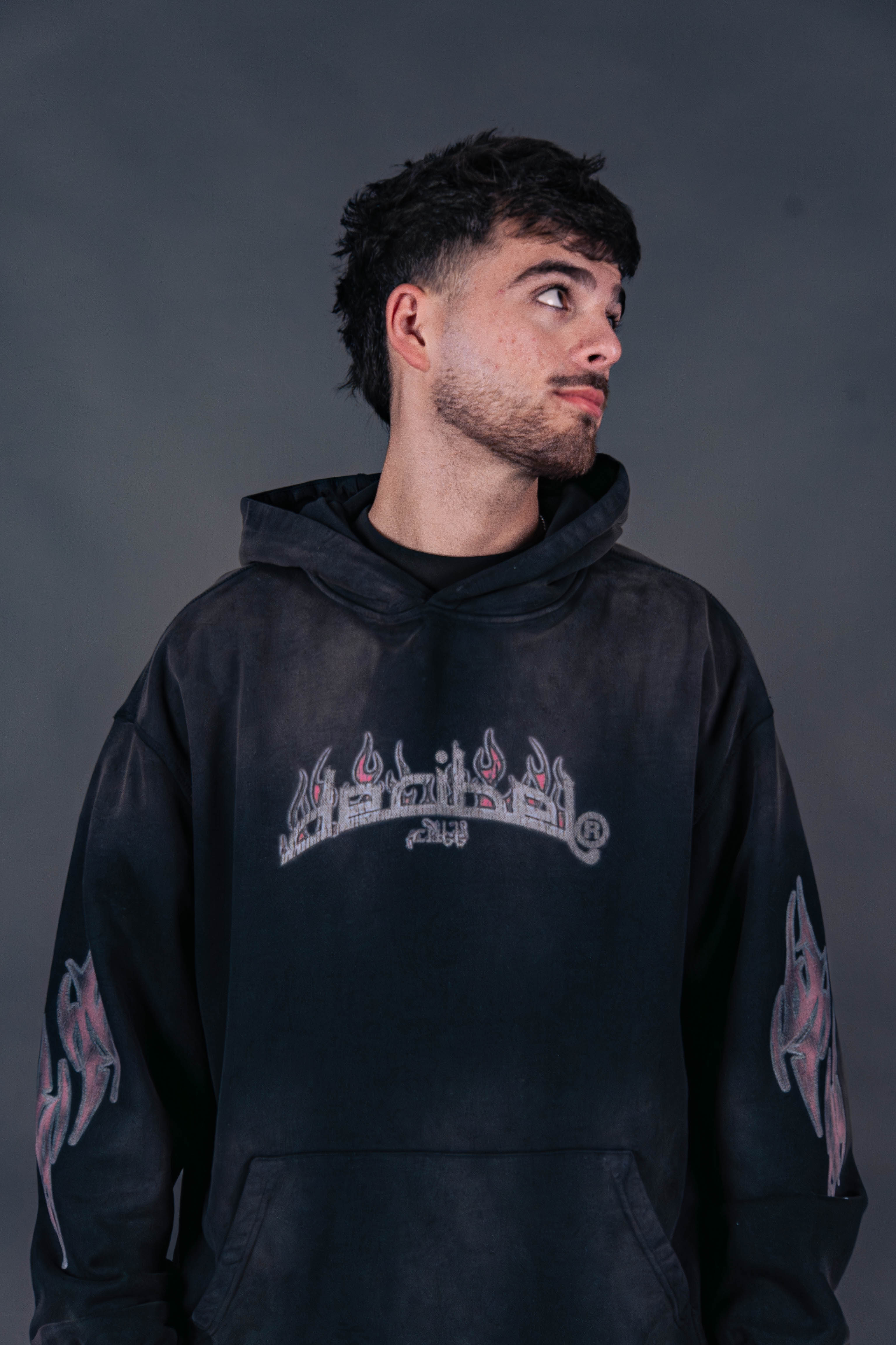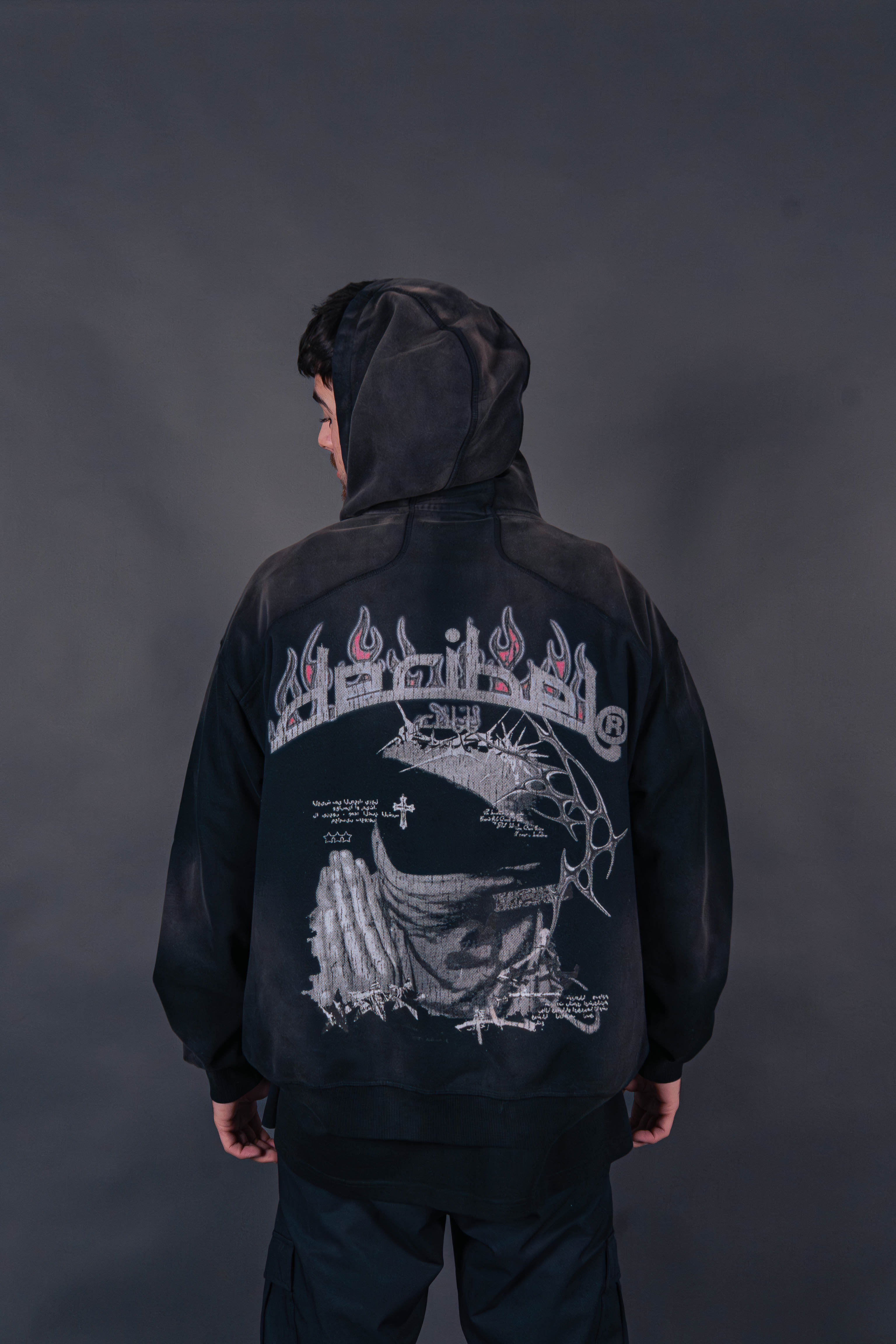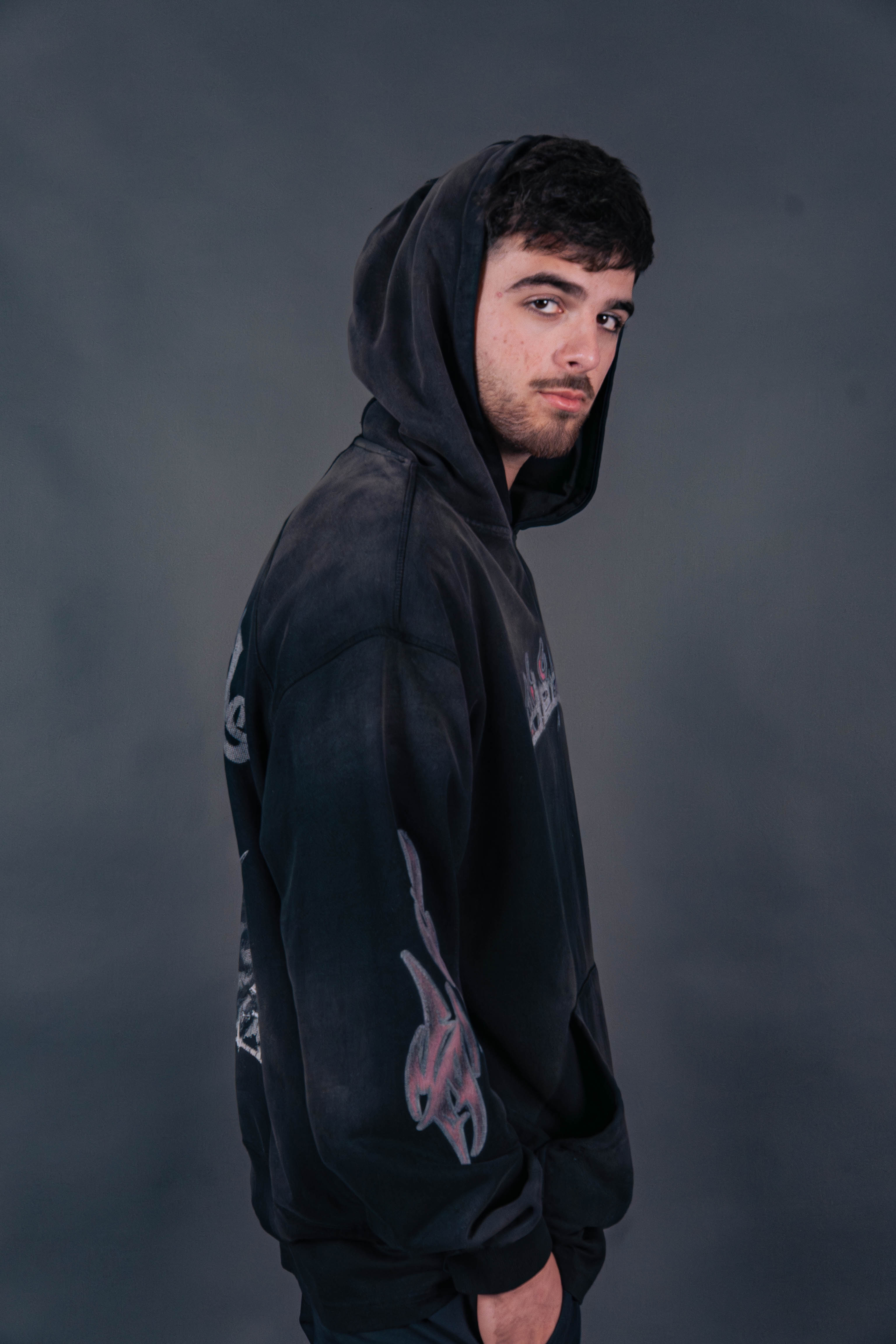 UNISEX HOODIE IN 100% COMBED COTTON. BAGGY OVERSIZED FIT. PRINTED ON FRONT AND BACK. MADE IN CHINA.